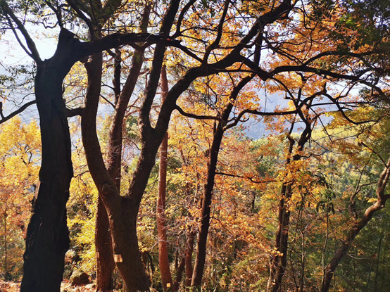 沿著石砌的小徑,在高大的楓樹(shù)、修長(zhǎng)的竹林和矮小灌木交雜的樹(shù)蔭底下,呼吸著清新的空氣,一眾年輕人興致勃勃地往上閑走。落葉遍地、微風(fēng)瑟瑟、秋陽(yáng)和煦,離開(kāi)枯燥的定額、算量,人們猶如放飛的小鳥(niǎo),自由而又奔放。