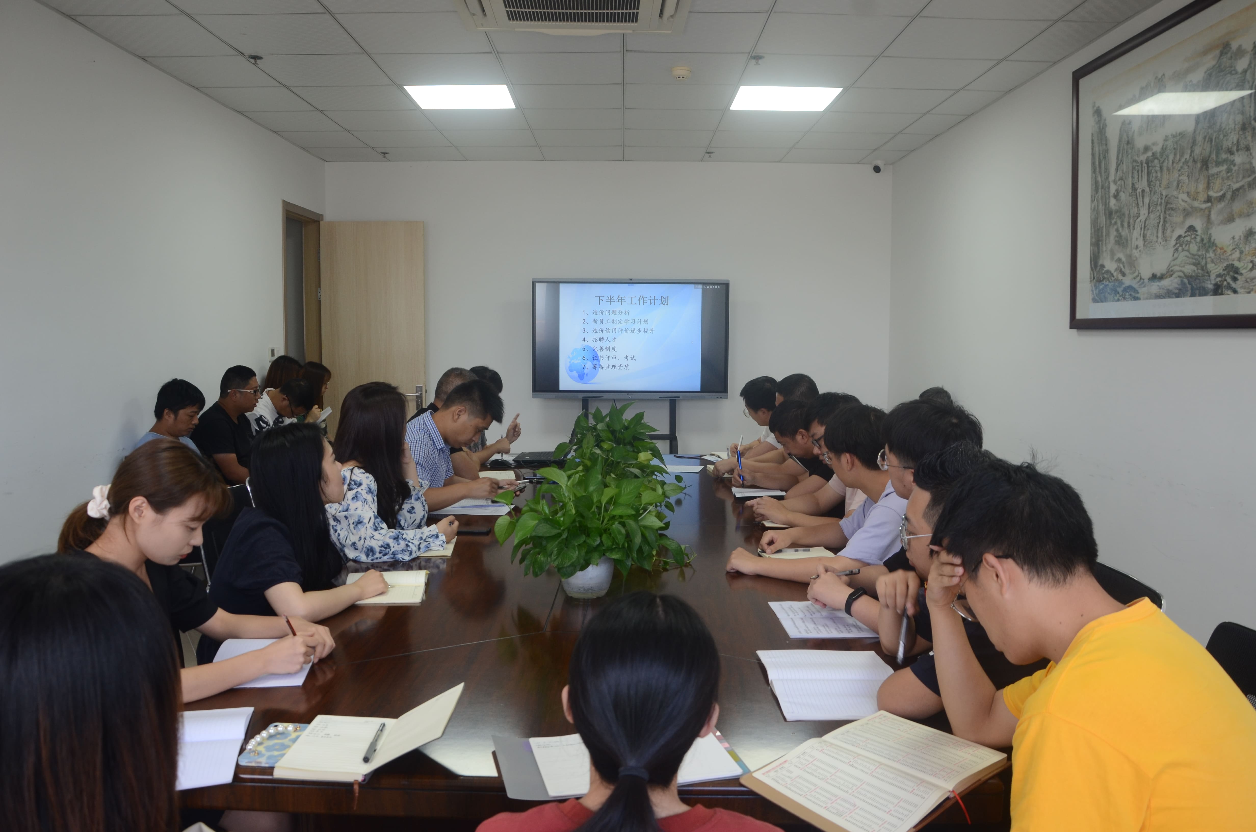 造價部負責(zé)人邵增躍著重講了三方面內(nèi)容:第一,下半年重點部署全過程項目的開展、全過程駐場人員及后臺人員的培養(yǎng)、全過程項目的流程培訓(xùn)。第二,工作質(zhì)量需要提高,責(zé)任心需要加強。三,項目完成的時間觀念必須加強,未按時完成的項目必須注明原因,每個項目完成過程中盡量不穿插別的項目。