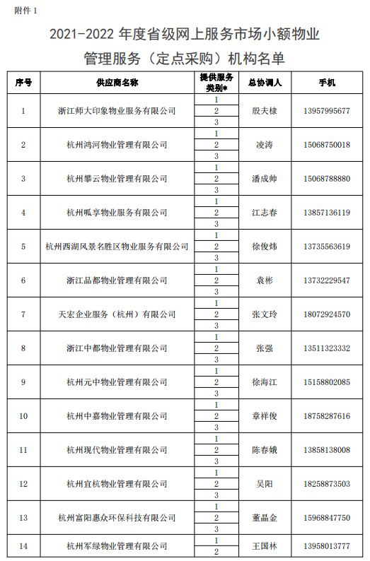 1.2021-2022 年度省級網上服務市場小額物業(yè)管理服務(定點采購)機構名單