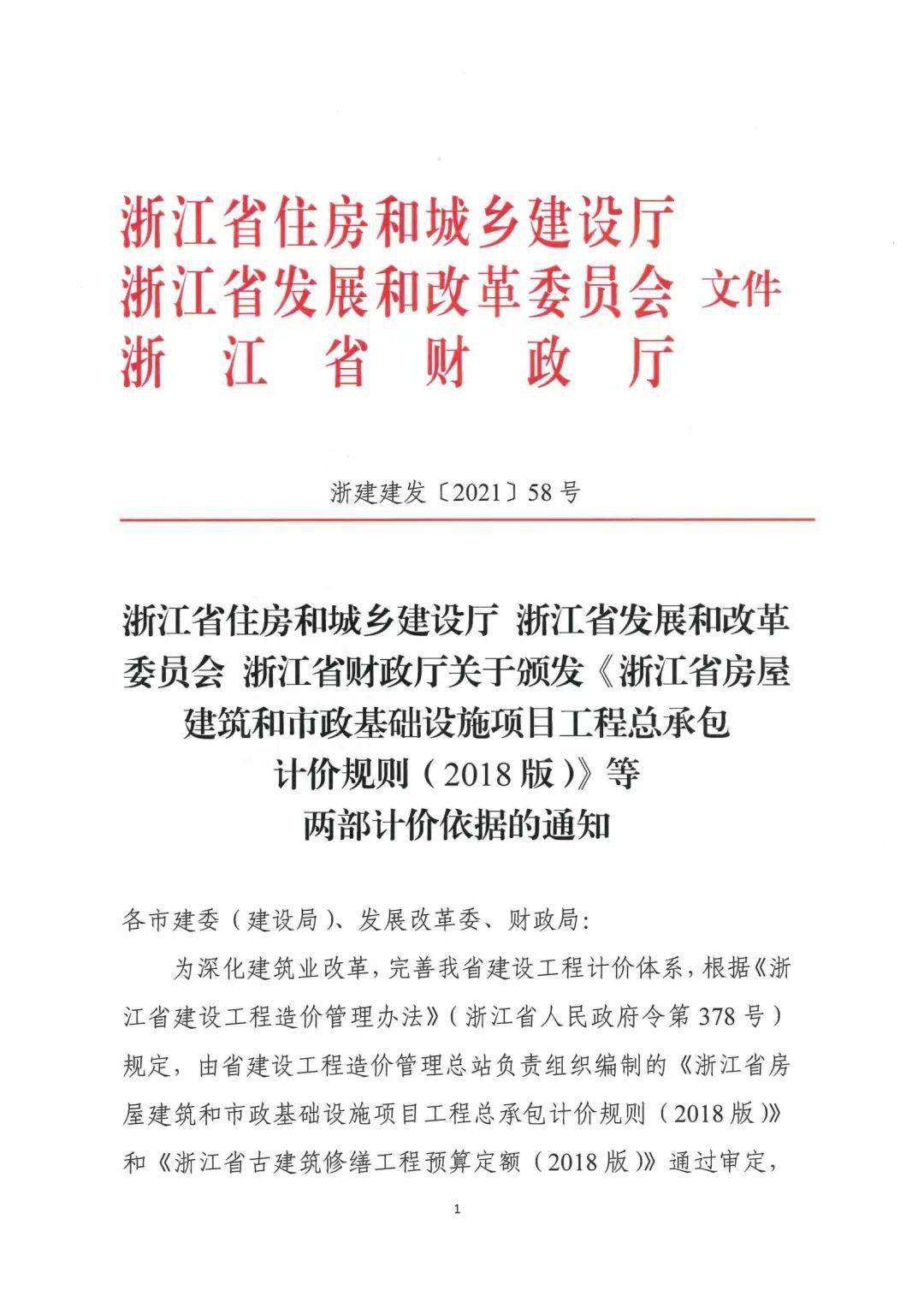 浙江省住房和城鄉(xiāng)建設(shè)廳浙江省發(fā)展和改革委員會(huì)浙江省財(cái)政廳關(guān)于頒發(fā)《浙江省房屋建筑和市政基礎(chǔ)設(shè)施項(xiàng)目工程總承包計(jì)價(jià)規(guī)則(2018版)》等兩部計(jì)價(jià)依據(jù)的通知