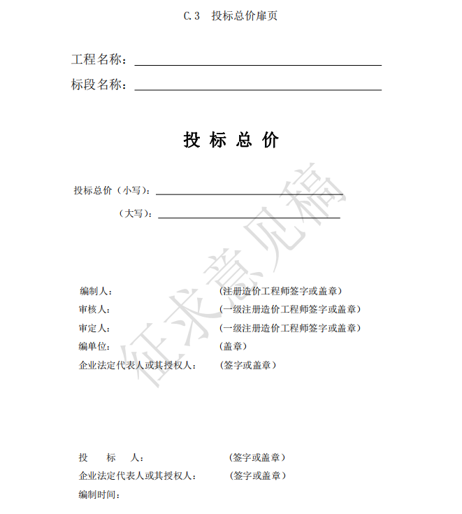 2 扉頁(yè)應(yīng)按規(guī)定的內(nèi)容填寫(xiě)、簽字、蓋章,除承包人自行編制的投標(biāo)報(bào)價(jià)和竣工結(jié)算外,受 委托編制的最高投標(biāo)限價(jià)、投標(biāo)報(bào)價(jià)、竣工(過(guò)程)結(jié)算,應(yīng)由一級(jí)造價(jià)工程師簽字、蓋章以及工 程造價(jià)咨詢(xún)?nèi)松w章。 3 總說(shuō)明應(yīng)按下列內(nèi)容填寫(xiě):
