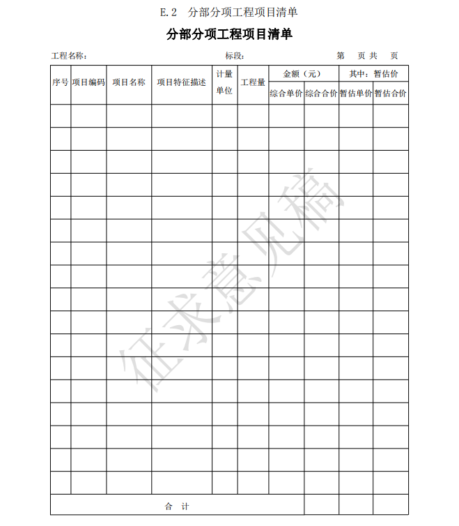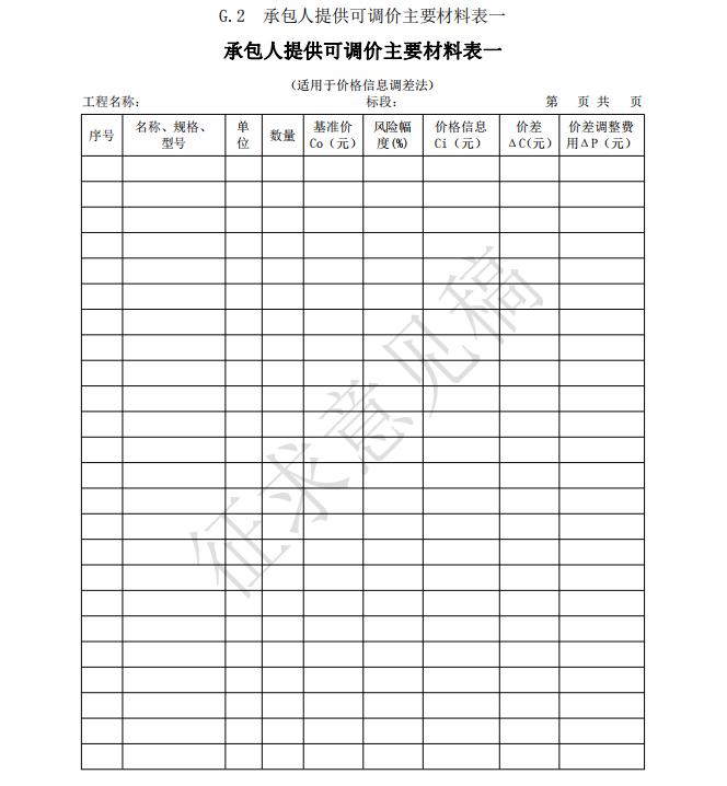 14.0.1 工程計(jì)價(jià)表宜采用統(tǒng)一格式。各省、自治區(qū)、直轄市建設(shè)行政主管部門(mén)和行業(yè)建設(shè)主管部 門(mén)可根據(jù)本地區(qū)、本行業(yè)的實(shí)際情況,在本標(biāo)準(zhǔn)附錄 B 工程計(jì)價(jià)表格的基礎(chǔ)上補(bǔ)充完善。