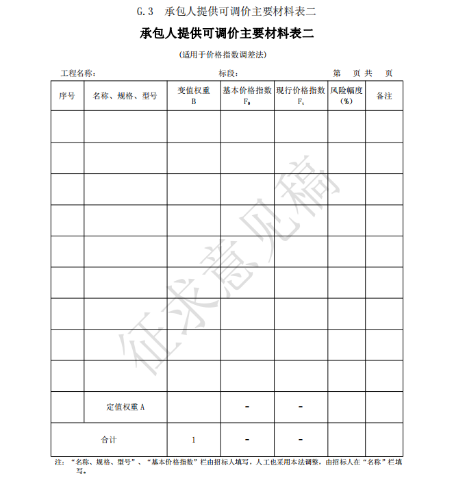 2)投標(biāo)報(bào)價(jià)使用的表格包括:B.3、C.3、D.1、D.2、E.1、E.2、E.3、E.4、E.5-1 或 E.5-2、 E.10、G.1、G.2、G.3、G.4;
