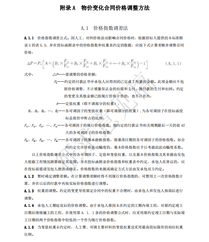 1 承包人投標(biāo)報(bào)價(jià)中材料單價(jià)低于基準(zhǔn)單價(jià):施工期間材料單價(jià)漲幅以基準(zhǔn)單價(jià)為基礎(chǔ)超過(guò) 合同約定的風(fēng)險(xiǎn)幅度值,或材料單價(jià)跌幅以投標(biāo)報(bào)價(jià)為基礎(chǔ)超過(guò)合同約定的風(fēng)險(xiǎn)幅度值時(shí),其超過(guò) 部分按實(shí)調(diào)整;