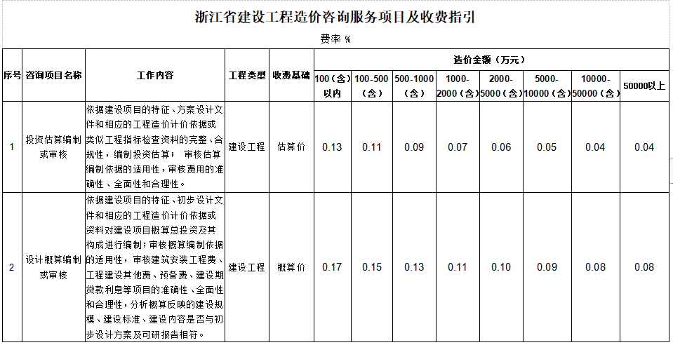 附件浙江省建設(shè)工程造價咨詢服務(wù)項目及收費指引