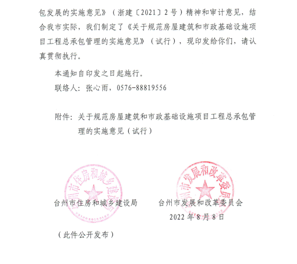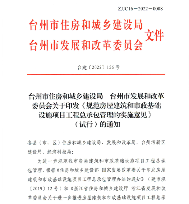 臺州市住房和城鄉(xiāng)建設局、臺州市發(fā)展和改革委員會關于印發(fā)《規(guī)范房屋建筑和市政基礎設施項目工程總承包管理的實施意見》(施行)的通知
