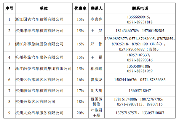 上述企業(yè)自通知發(fā)布之日起可承擔(dān)公務(wù)出行定點(diǎn)租賃服務(wù),其服務(wù)范圍、執(zhí)行程序及服務(wù)有效期按2019年9月10日發(fā)布的《浙江省財(cái)政廳關(guān)于公布2019-2021年度公務(wù)出行車輛租賃定點(diǎn)服務(wù)采購結(jié)果的通知》執(zhí)行。各定點(diǎn)服務(wù)機(jī)構(gòu)價(jià)格及承諾優(yōu)惠率請?jiān)谡憬少従W(wǎng)(www.zjzfcg.gov.cn)下載查詢。