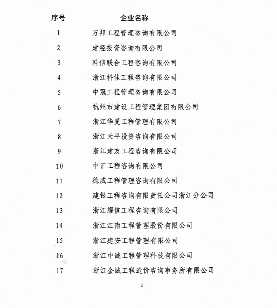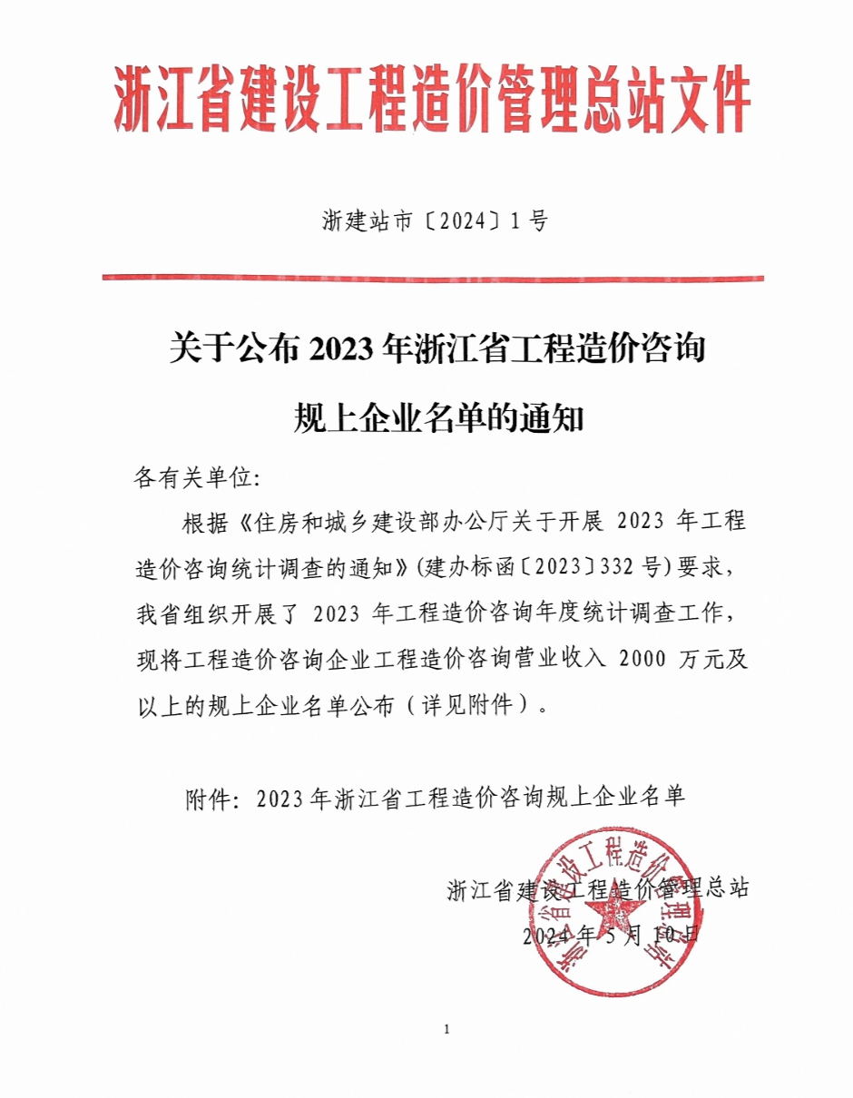 各有關單位: 根據(jù)《住房和城鄉(xiāng)建設部辦公廳關于開展2023年工程造價咨詢統(tǒng)計調(diào)查的通知》(建辦標函(2023)332號)要求,我省組織開展了2023年工程造價咨詢年度統(tǒng)計調(diào)查工作,現(xiàn)將工程造價咨詢企業(yè)工程造價咨詢營業(yè)收入2000萬元及以上的規(guī)上企業(yè)名單公布,詳見附件。 附件:2023年浙江省工程造價咨詢規(guī)上企業(yè)名單