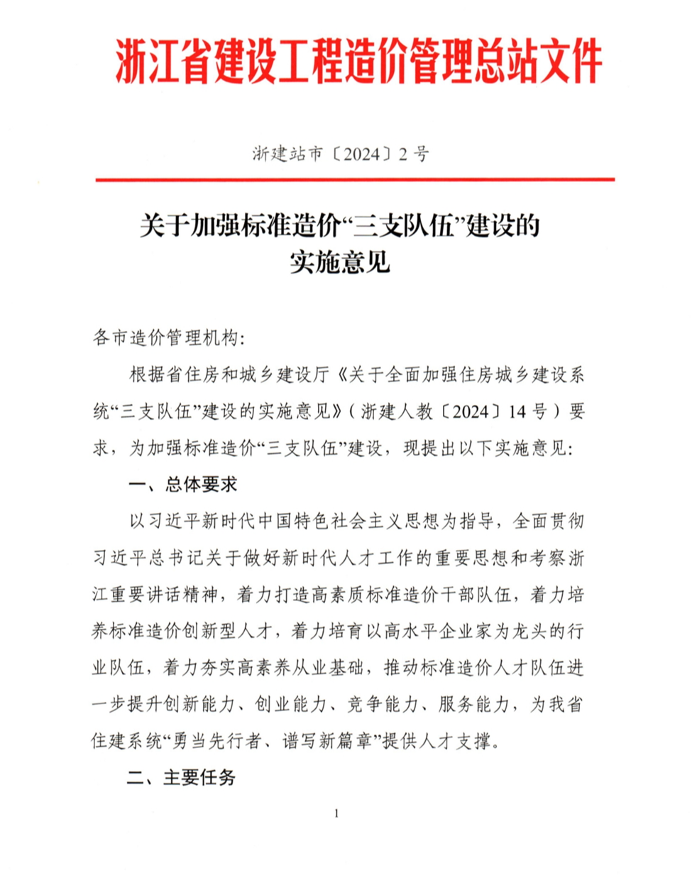 根據省住房和城鄉(xiāng)建設廳《關于全面加強住房城鄉(xiāng)建設系統(tǒng)“三支隊伍”建設的實施意見》(浙建人教〔2024〕14號)要求,為加強標準造價“三支隊伍”建設,現提出以下實施意見: